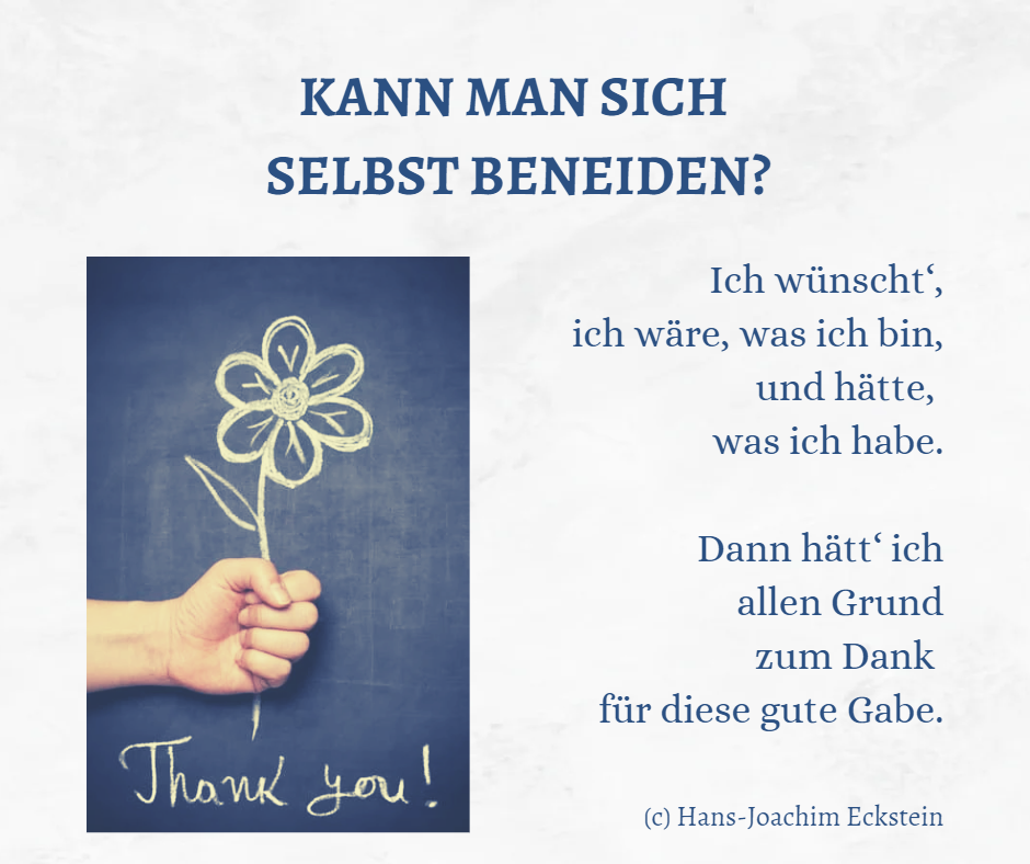 Die gestalteten Gedanken, Sinnsprüche und Aphorismen als Bildmotive eignen sich zum Downloaden für den persönlichen Bereich oder im Einsatz z.B. für den Beamer in der Gemeinde, für die Gestaltung des Gemeinde-Schaufensters oder -Briefs, als Einstieg für eine Andacht oder einen Hauskreis uvm. Alle Motive sind - jeweils mit Angabe des Autors - frei und kostenfrei für den privaten und gemeindlichen Gebrauch zu nutzen. Lassen Sie Ihre Kreativität walten.